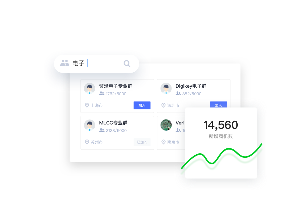 涵盖行业内40000个QQ采购群,根据AI算法精准推荐企业需要的行业群,高效聚合潜客与卖家,让商机不重不漏。腾讯企点腾采通支持根据分组快速群发产品信息,优惠活动,实现内容精准营销,为企业赢得更多客户。